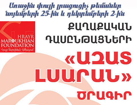 2017 թ սեպտեմբերից «Հրայր Մարուխյան» հիմնադրամը Երեւանում իրականացնում է քաղաքական դասընթացների «Ազատ լսարան» քաղաքագիտական ուսումնական ծրագիրը: Ուսումնական ծրագրի նպատակը քաղաքականությամբ հետաքրքրվող երիտասարդության քաղաքական գիտելիքների և հմտությունների խորացումն է, ինչպես նաև Հայաստանի ներքին և արտաքին քաղաքական օրակարգի ներկայացումը:
